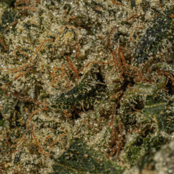 If you’ve been searching for the perfect sleepy bud to help you get to bed at night, you’ve found it with Da Funk. This bud packs a high that is soothing from start to finish, filling both mind and body with a numbing happiness and a pleasant tingly buzz. You’ll feel lifted with a sense of mental calm from start to finish as you’re filled with a heady relaxation and ease. Your body will soon follow suit, sinking into the couch with a calming overtone that will eventually leave you feeling couch-locked and sedated. With these effects and its high 24% average THC level, Da Funk is often chosen to treat those suffering from conditions such as insomnia, chronic pain, depression, chronic stress and cramps or muscle spasms. This bud has a sweet and sugary creamy vanilla flavor with a lightly fruity and sour citrusy exhale. Thea aroma is just as sweet, with a creamy vanilla overtone accented by sour citrus, flowery dank and skunky berries. Da Funk buds have small rounded emerald green nugs with dark olive green leaves, thin orange hairs and a coating of frosty golden white crystal trichomes.